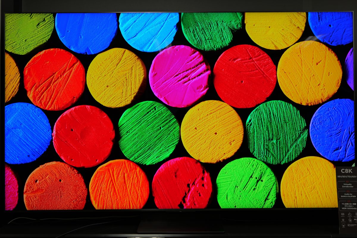 注目のC8Kにおいて、独自のポイントとして挙げられるのは「Virtually ZeroBorder」です。通常テレビ画面の端に黒い非表示領域があるものですが、C8Kではこの非表示領域をほとんどなくしています。これによって、たとえば壁掛け設置をした際に、映像が浮いているかのように見え、高い没入感を得られます。Virtually ZeroBorderはフラッグシップのX11Kにはない仕様です。