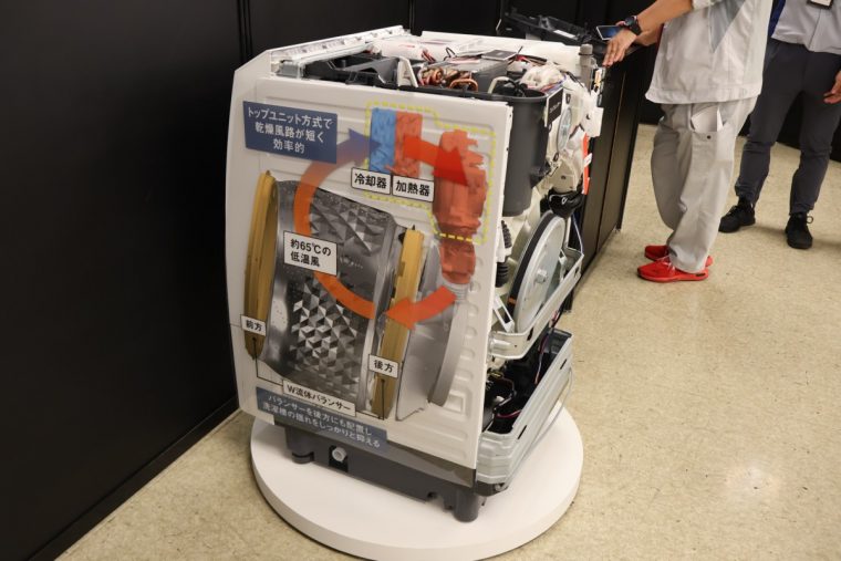 このほか、新モデルでは、従来の運転時間98分はそのままに、ヒートポンプユニットのコンプレッサー制御システムを改良して効率化を図り、消費電力量を約10%削減。さらに、昨年モデルに搭載された「汚れ剥がしコース」の対象コースが拡大され、より使いやすくなっています。