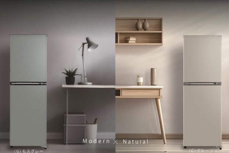 本製品は、単身や少人数世帯向けの容量160Lサイズ(冷蔵室 82L/冷凍室 78L)の2ドア冷凍冷蔵庫。カラーは、モダンなインテリアにも合わせやすい「モスグレー」と、ナチュラルな空間に良く似合う「グレージュ」の2色。設置場所の雰囲気やお好みに合わせて、自分らしいコーディネートを楽しめます。