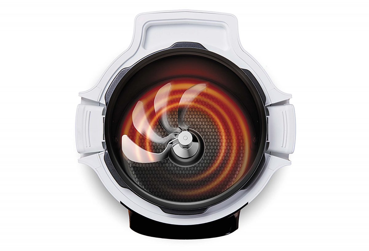 独自の「かきまぜパドル」が、自動で鍋底から食材を返しながら撹拌。まとめて食材を入れてボタンを押すだけで、チャーハンや焼きそば、カレーを自動調理できる。炒めものから煮つめ、圧力調理まで可能で、コンパクト設計なのも魅力だ。