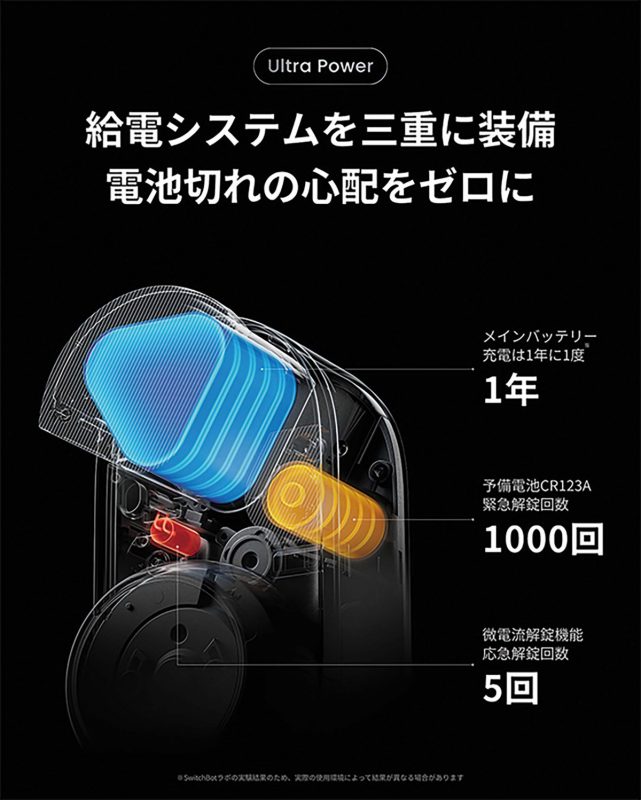 万が一電池残量がゼロでも緊急で解錠できて、閉め出しの心配がない。