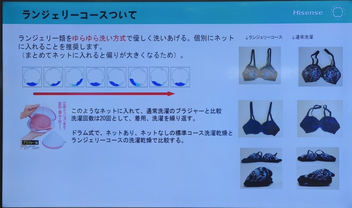 例えばランジェリーコースの場合、新開発のゆらゆら洗いを用いることで型崩れを防ぎながら優しく洗います。