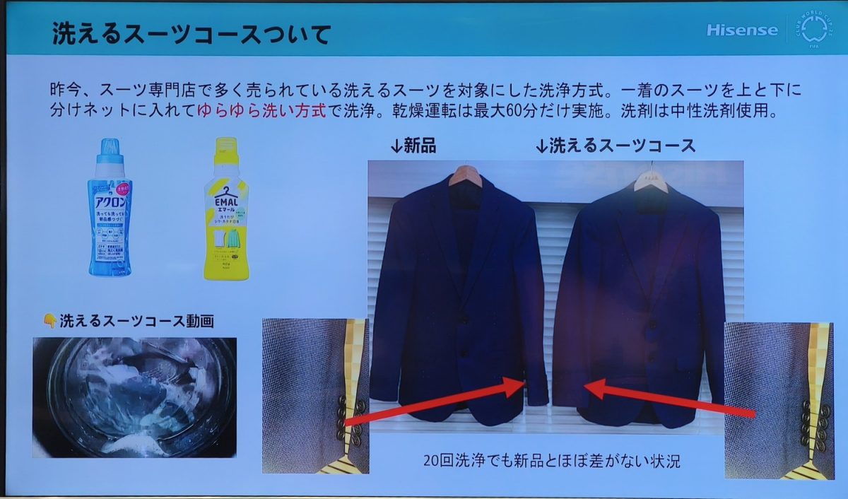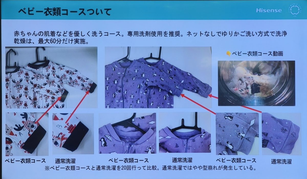 そのほか、スーツ専門店で多く売られている「洗えるスーツ」をゆらゆら洗いで優しく洗浄する「洗えるスーツコース」、デリケートな赤ちゃん用衣類をゆらゆら洗いで優しく洗う「ベビー衣類コース」などを用意しています。