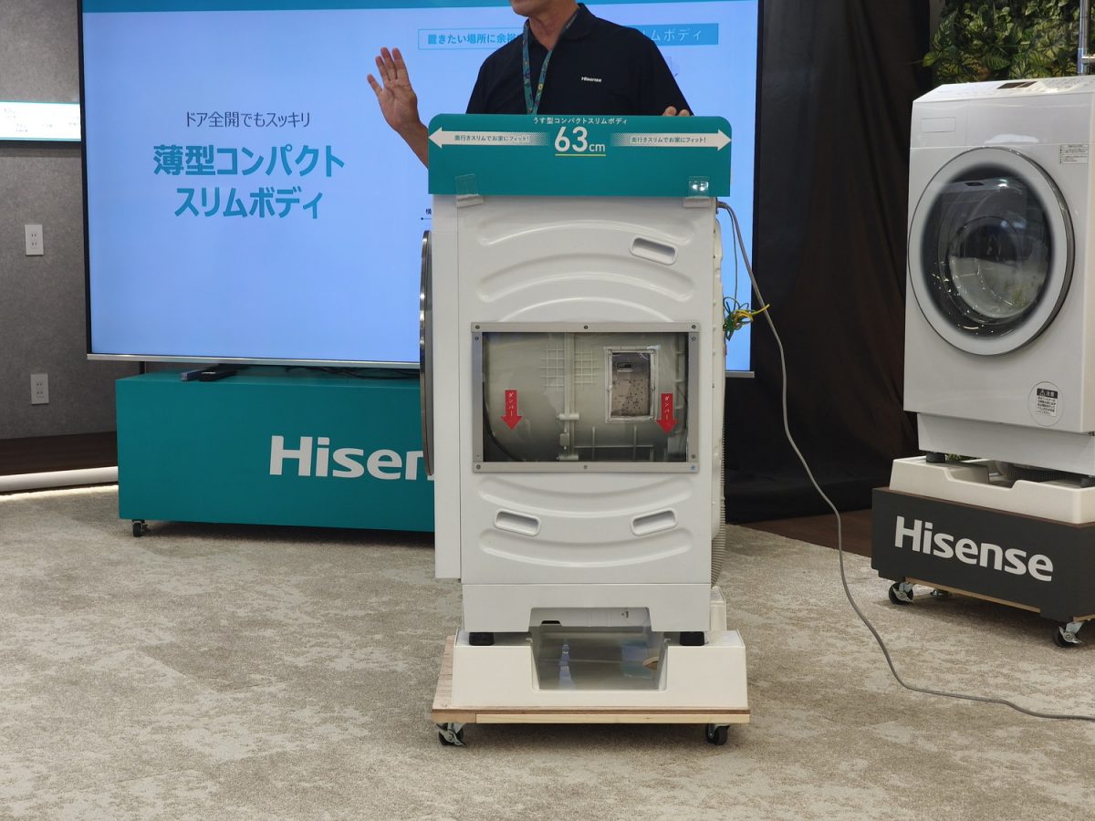 ハイセンスジャパンはヒートポンプ乾燥方式を採用するドラム式洗濯乾燥機「HWF-D120XL」を発表しました。洗濯容量12kg、乾燥容量6kgの大容量モデルながら、同クラスでトップクラスのコンパクトさを実現。しかも、実売想定価格16万8000円(税込)と、かなりのコスパの良さを実現しています。