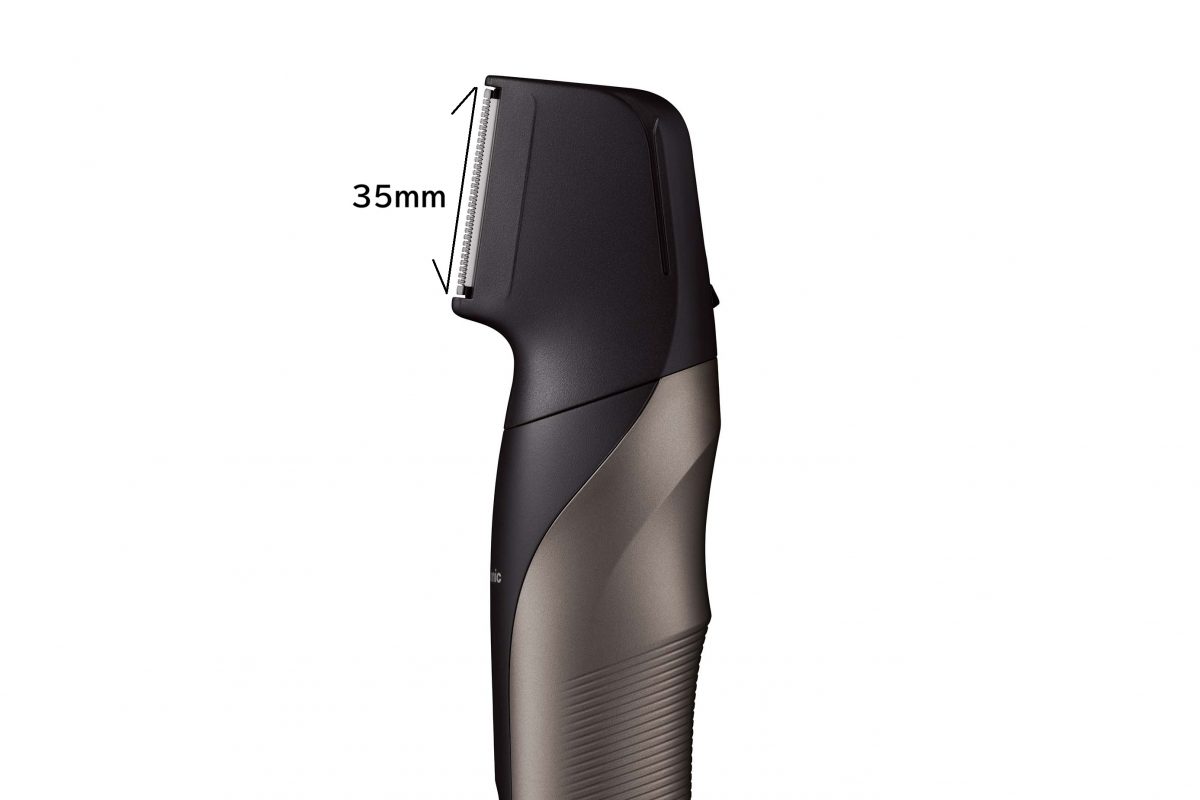 ER-GK83のカット部は35mmとワイドな仕様となっている。さらに、モーターはトルク約1.4倍(※1)とパワフルで、一度に多くの毛を捕らえて剃ることが可能。何度も刃を体に当てることなく、スピーディーにムダ毛を処理することができる。