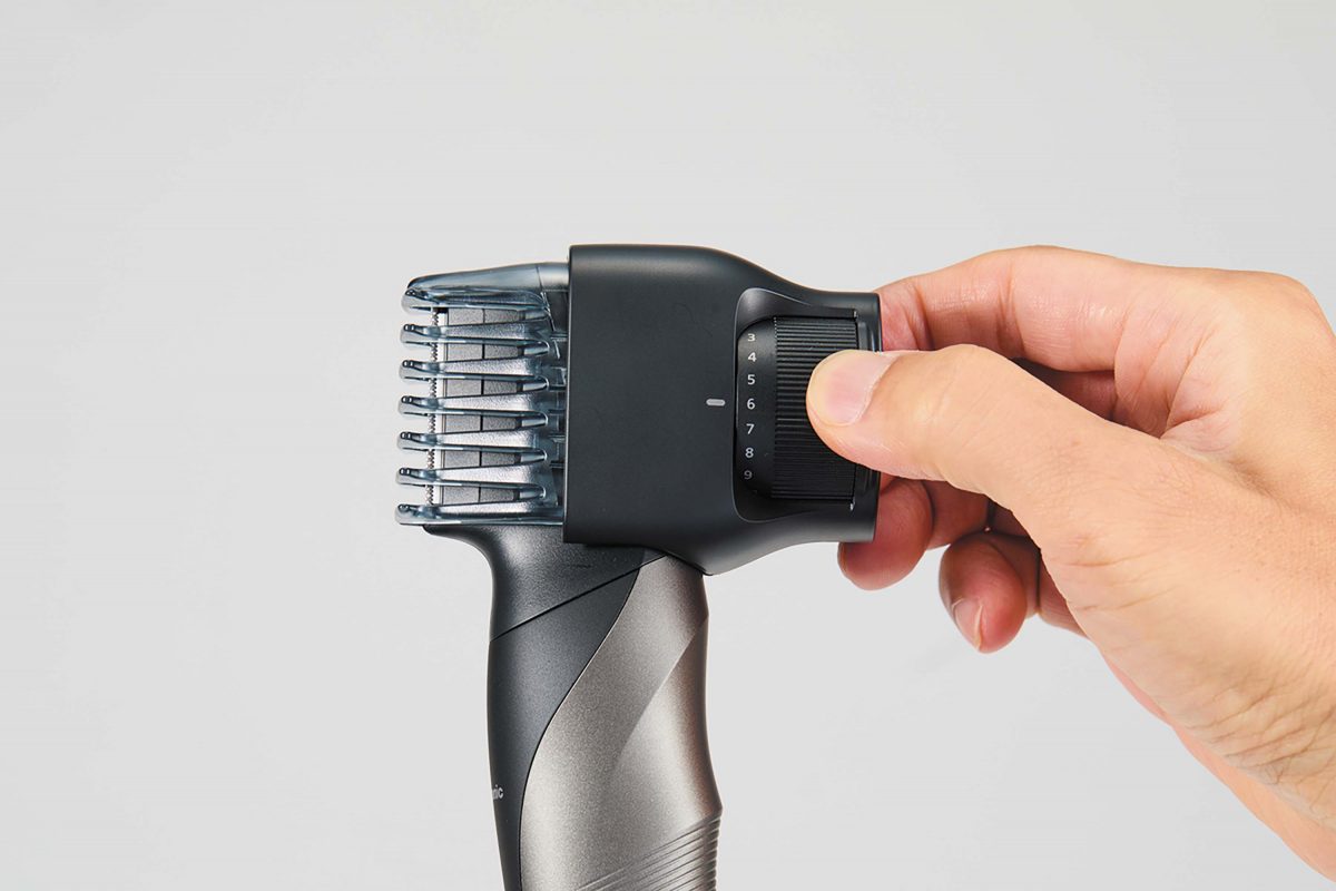 今回、家電大賞にノミネートされた「ER-GK83」は、切れ味と肌当たりにこだわった日本製の刃(※3)と、トルク約1.4倍(※1)のパワフルモーターを搭載。安全カット構造を採用し、全身のムダ毛をしっかりと肌にやさしく剃れる。刃の長さが35mmとワイドで、広範囲をすばやく剃れるところも好評だ。さらに、2種類のアタッチメント(※2)が付属し、約0.1mm(※4、※5)から12mmまで段階で好みの長さに調整が可能。「いきなりツルツルにするのは抵抗がある」というムダ毛処理初心者にうれしい仕様だ。