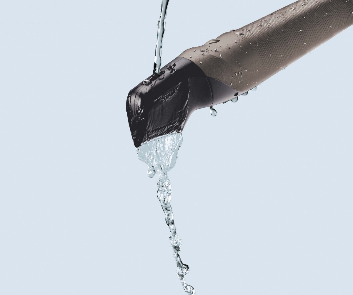 IPX7基準の防水設計(※6)なので、本体を丸ごと水洗いでき、刃を外さずに毛クズを洗い流せる「ウォータースルー洗浄機能」も搭載。お風呂でも使用できるので、充電しておけば、事前準備不要で剃りたいときにサッと使えて、後片付けも簡単だ。