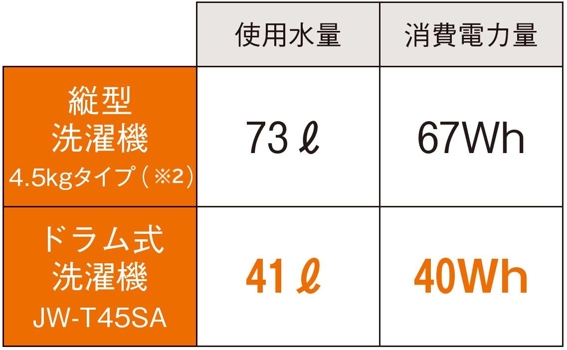 【POINT03】縦型洗濯機と比較して使用水量と消費電力が約3分の2に