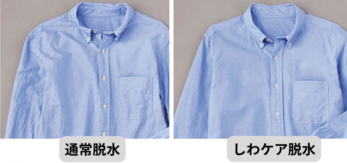 頑固な皮脂汚れも落ちて、設定60℃で洗えば除菌もできる「お湯洗い機能」を搭載。「しわケア脱水」は脱水時間と回転数を調整し衣類のシワを抑制、アイロンがけの手間を減らせる。