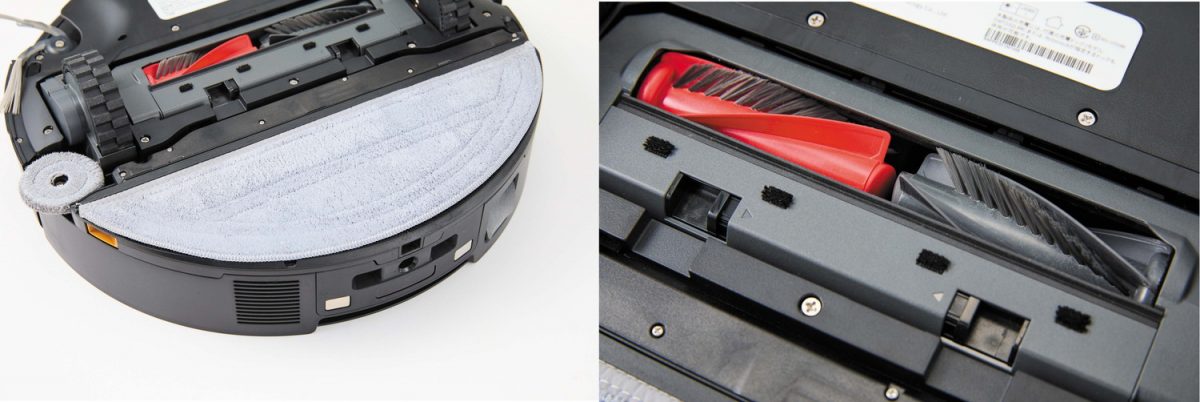 パワフルな吸引力で床面から汚れやゴミを吸い取る。メイン・サイドブラシ共に髪の毛やペットの毛が絡まらず、ゴミをダストボックスに導く。吸水性に優れたモップと4000回/分の高速振動で力強い水拭きも叶う。