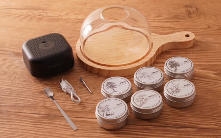 火を使わず手軽に燻製が楽しめる卓上燻製器。チーズやナッツなどを燻製すれば、香り高いおつまみが作れます。6種類のスモークチップが付属するので、好みのチップで燻製可能。市販のチップも使用できます。