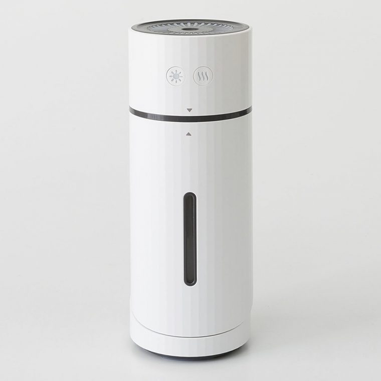 職場のデスクや自宅のベッドサイドなど、パーソナルに使えるコンパクトな加湿器。角度を変えて必要な場所だけ加湿することができます。充電式なので持ち運んで使用可能。明るさを調整できるLEDライトを搭載しており、ナイトライトとしても使えます。