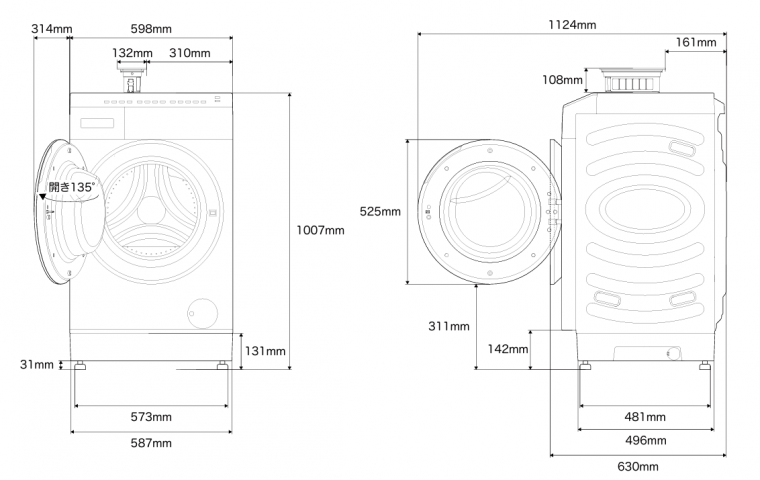 | 外形寸法 | 幅598mm×奥行630mm×高さ1007mm |