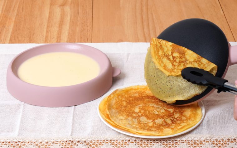 付属の専用トレイを使用することで生地を無駄なく焼くことができ、焼き上がりも剥がれやすいため、誰でも簡単に薄くてきれいなクレープが作れます。