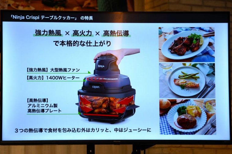 「アメリカでは、ニンジャは加熱調理家電カテゴリーにおいてもシェアナンバーワンを獲得しています。今回発売する商品は、すでに北米では大ヒットしている商品で、アジアでは日本が初めての発売となります。いずれもこれまでのお料理時間をより“簡単、おいしい、楽しく”に変え、新しい体験を提供する加熱調理家電です」と、自信を持って新製品をお披露目しました。
