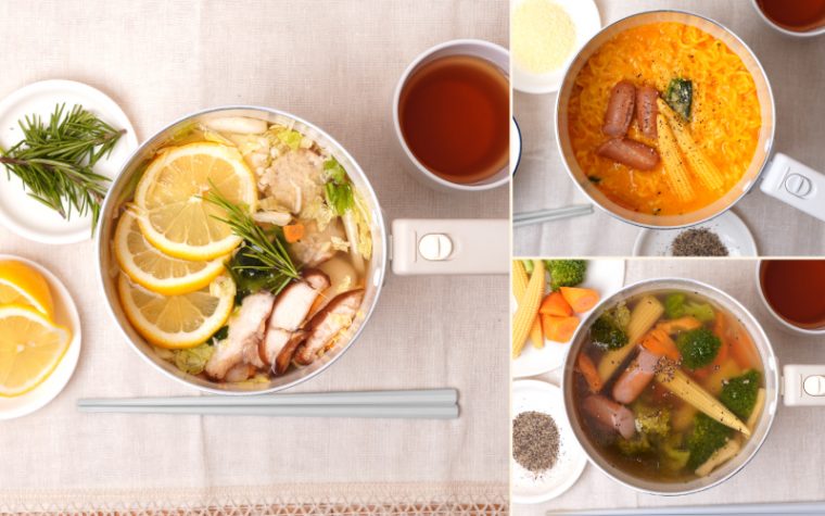 電気鍋は電源さえつなげば、どこでも使用できるのが便利。ガスコンロやIHコンロのない部屋でも手軽に調理ができます。一人用サイズなので、ちょっとした夜食を作るときにも◎。