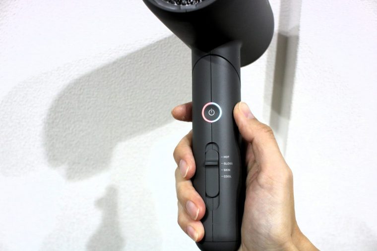 なお、温風と冷風が自動で交互に切り替わるため、“GLOSS”モードのみでタオルドライの状態から乾かそうとすると、なかなか乾きません。メーカーがおすすめするやり方は、「“HOT”モードで9割乾かした後、“GLOSS”モードで仕上げる」方法。そのとおりにやってみたところ、“GLOSS”モードは1分弱しか当てなかったにもかかわらず、ツヤの効果を発揮してくれました。