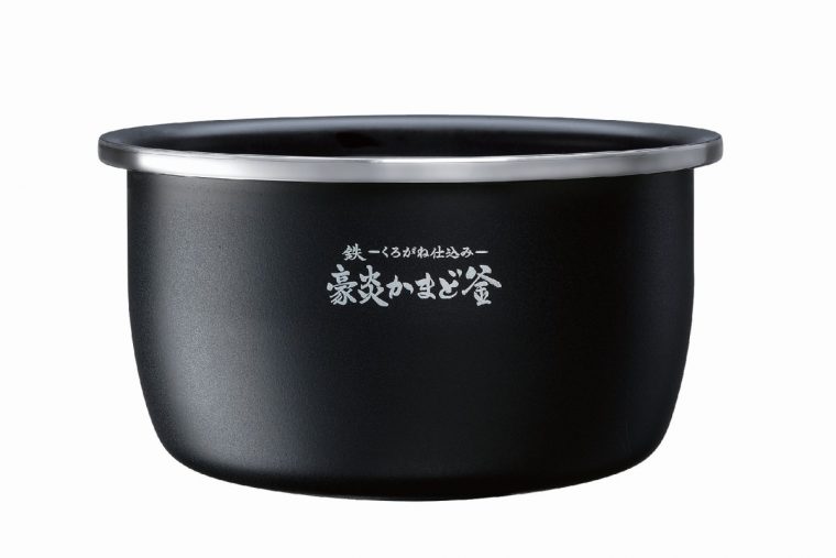 内鍋には、IHと相性が良く蓄熱性と発熱効率が高い「鉄」素材を、熱伝導率の高い「アルミ」層と、耐久性に優れた「ステンレス」層の間に組み込んだ「鉄(くろがね仕込み)豪炎かまど釜」を採用。内釜のふち部分は特に厚くし、「炎舞炊き」の熱が外に逃げるのを抑え、大火力の熱を効率よくお米に伝えます。