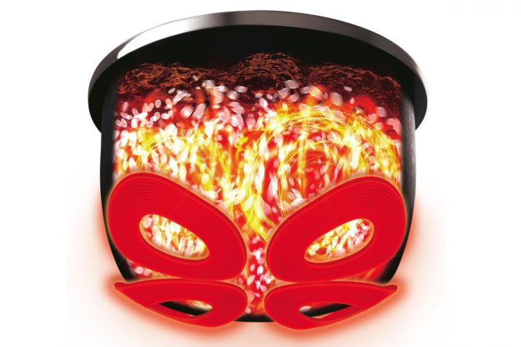 本製品は、底IHヒーターを4ブロックに分けて独立制御し、対角線上にある2つのヒーターを同時加熱するローテーションIH構造を採用。この構造により部分的な集中加熱が可能となり、釜内に大火力による激しい対流が発生し、お米が強くかきまぜられることで、ふっくらとした粒感と甘みを引き出します。 新モデルでは、さらなるおいしさを追求し、IHヒーターの出力をアップさせ、1200Wの大火力を実現しています。