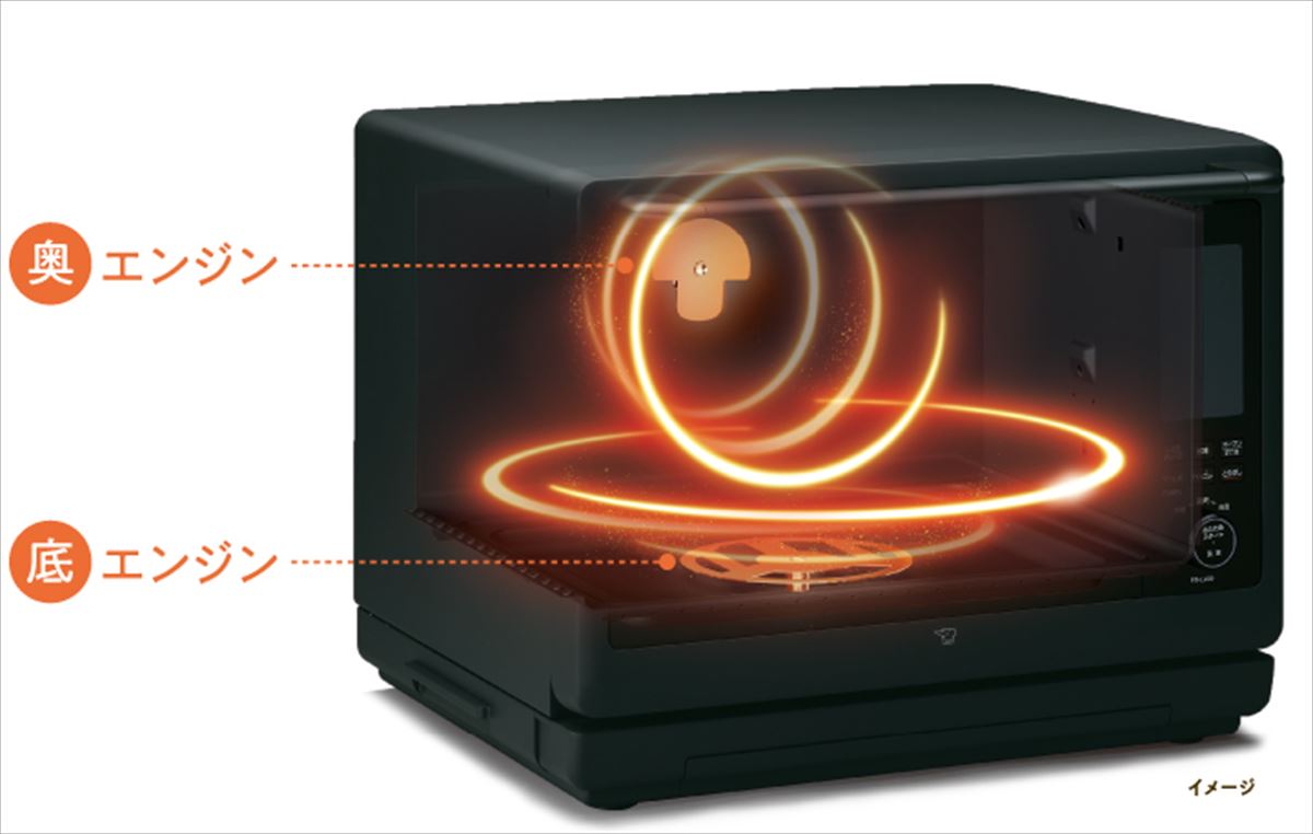 象印は発想そのものを変えたのです。1つのエンジンでムラができるなら、2つにしてしまえばいいと。ES-LA30は底面と背面の2か所に搭載したマグネトロンを同時に作動させることで、あたためムラを解消するとともに、時短調理も実現しました。