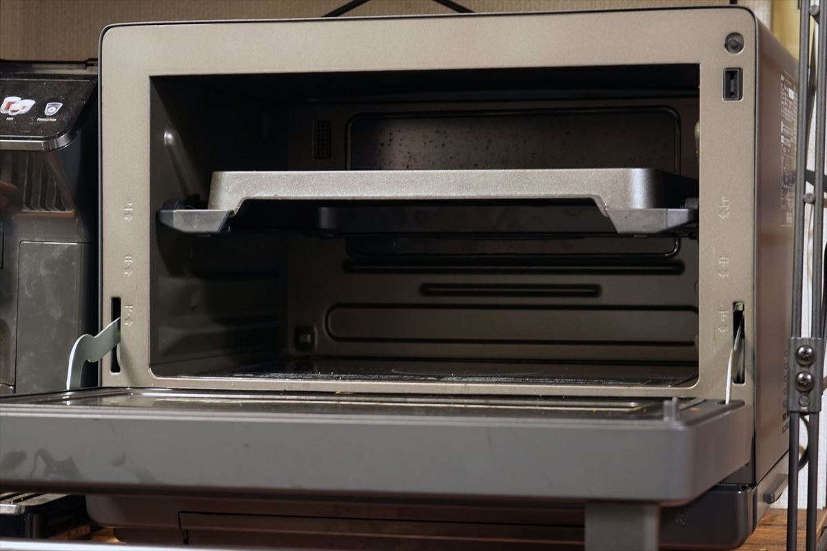 なお、本体サイズは幅498×高さ395×奥行き445mmで設置時は背面をピタ付けできますが、左右は2cmずつ、上面は10cm空ける必要があります。庫内サイズは30L、トレイは1段のみなので、トレイ2枚を使ったパンなどの2段オーブン調理には非対応。その代わり、Wレンジによる、最大4品の2段あたためなどが可能です。