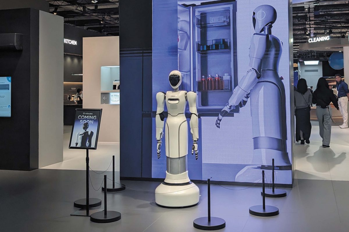 新しい時代の到来を強く感じさせたのが、家事支援用のヒューマノイドロボットです。Midea(マイディア)が展示した「Mira」は、洗濯物をたたむ、掃除をする、調理を補助するなど、日常の家事をサポートすることを目的としたモデル。「人と家電の共存」をテーマに掲げるMideaらしい発想で、美しく洗練されたデザインの人型家事ロボットです。