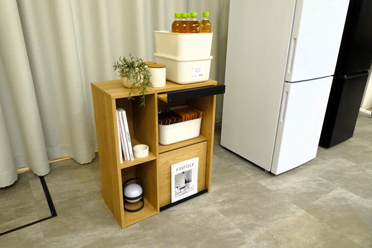 ショールームで実物を確認してみると、家電は最小限のコンパクトさに必要な機能を集約したハイパフォーマンスさ、家具はスリムでも見た目以上に入るスぺパな設計に感心しました。幅や奥行きを最小限に抑えながらも、収納量、使い勝手を損なわない工夫が随所に見られます。
