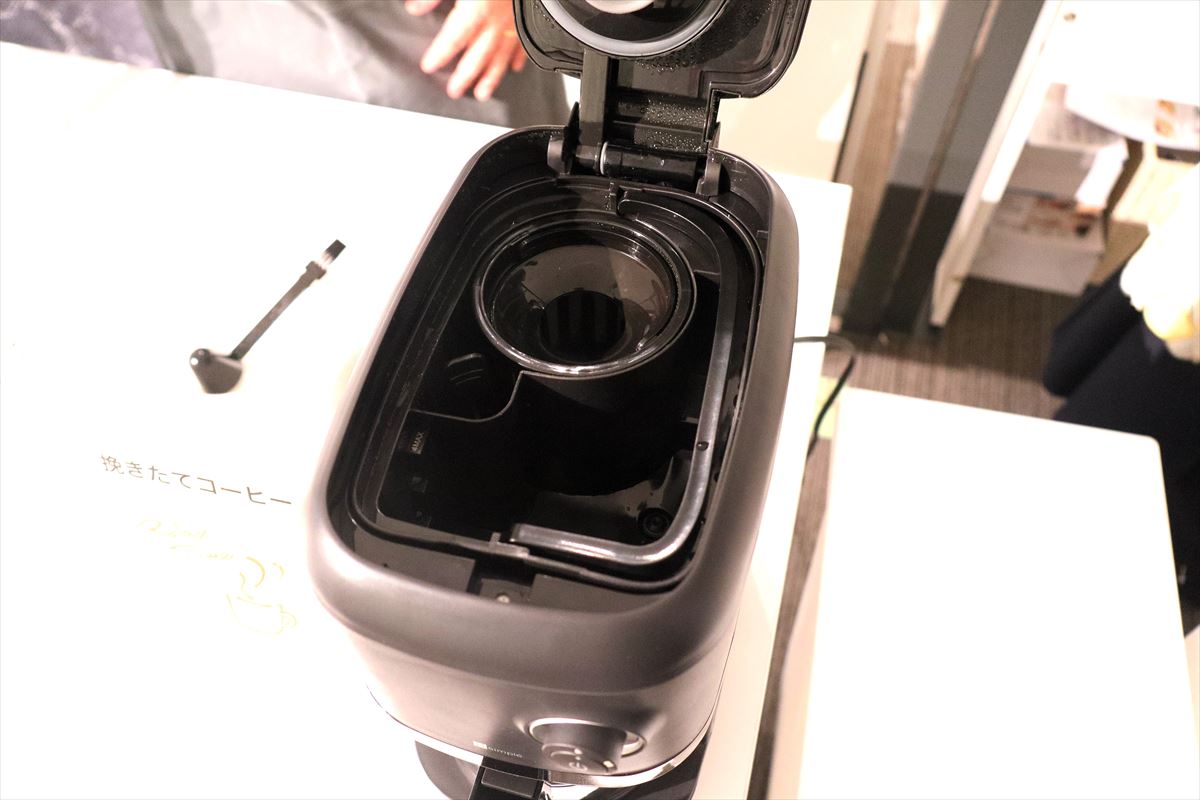 豆挽きから抽出まで全自動のコーヒーメーカーは3月の発売です。価格は9990円。メッシュフィルター採用で、市販のコーヒー粉の抽出も可能です。