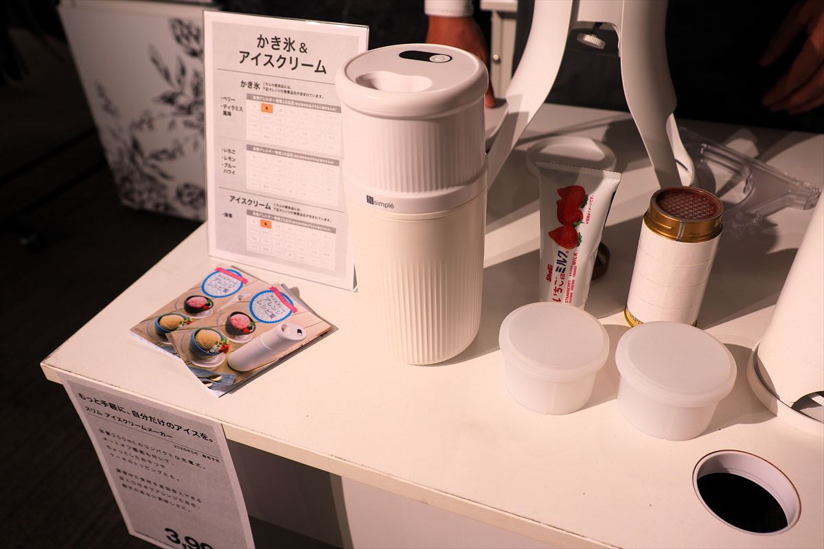 キッチン家電分野では「スリムアイスクリームメーカー」(3990円)と「2Wayスリムかき氷器」(3990円)も発売します。アイスクリームメーカーは、容量250mlのコンパクトサイズで充電式。かき氷器も充電式で、スティックとスタンドの2通りの使い方ができます。ともに5月の発売です。