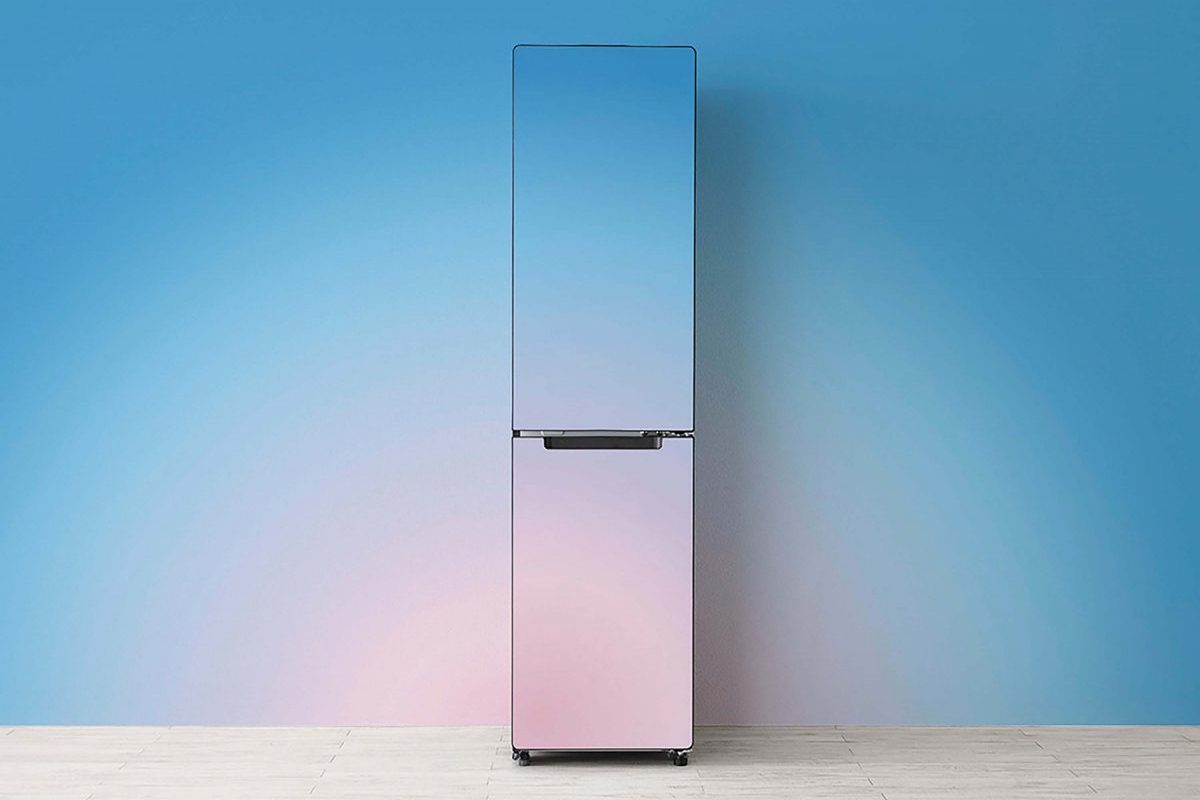 「冷蔵庫はもっと自由だ」をキャッチとした、自由にカスタマイズできる208Lスリム冷蔵庫。幾何学模様やPOPデザインなど、16種類の付け替え可能なマグネットカバーを用意。