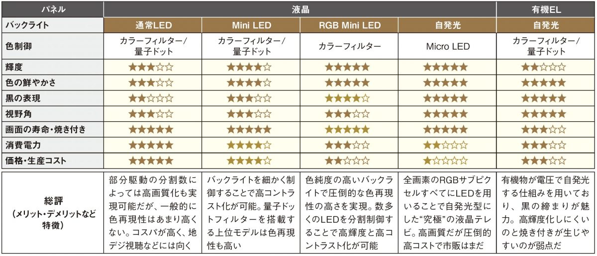 Mini LEDを用いた部分駆動の進化などにより、液晶テレビの高画質化が進んでいる。有機ELにも劣らない高コントラストを実現し、LEDの高輝度化によって昼間のリビングでも楽しめる圧倒的な明るさも魅力だ。自発光型の有機ELテレビも人気だが、やはり市場の主流は液晶テレビだと言える。