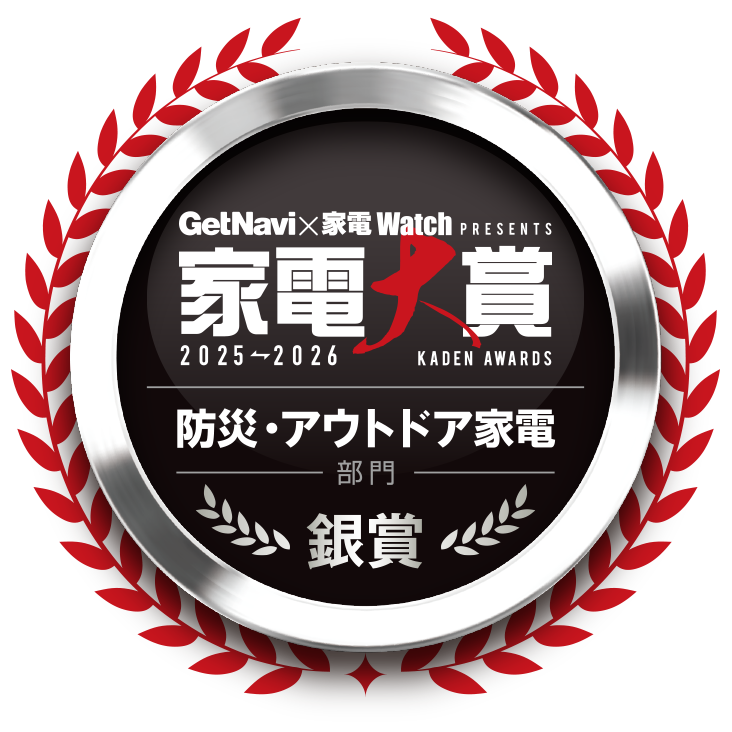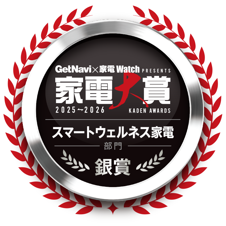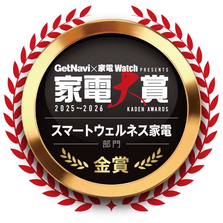 「家電大賞」は、モノ・トレンド情報誌「GetNavi」および同ウェブメディア「GetNavi web」と、家電と暮らしの情報サイト「家電 Watch」による年に1度の総合家電アワード。今年で11回目となった「家電大賞2025-2026」では、2025年発売のノミネート家電151製品のなかから、読者の投票(投票期間は2025年11月21日~2026年1月5日)により、グランプリと部門賞(特別賞含む全28部門)が決定しました。今回は、スマートウェルネス家電部門、シャワーヘッド部門、セキュリティ家電部門、防災・アウトドア家電部門、EV部門の金賞・銀賞・銅賞を受賞した製品を一気に紹介していきましょう!