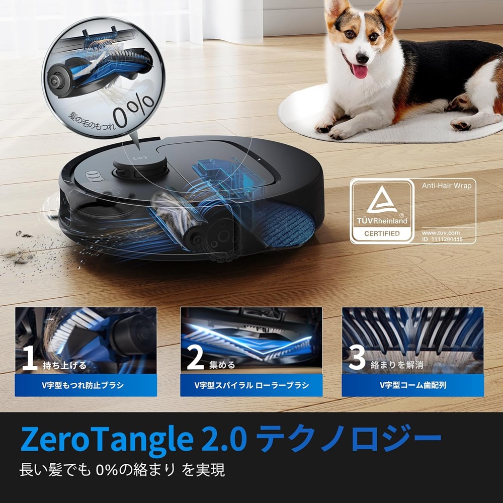 ・髪の毛が絡みにくいV字ブラシ搭載の「ZeroTangle 2.0」で、ブラシ清掃の手間を低減。