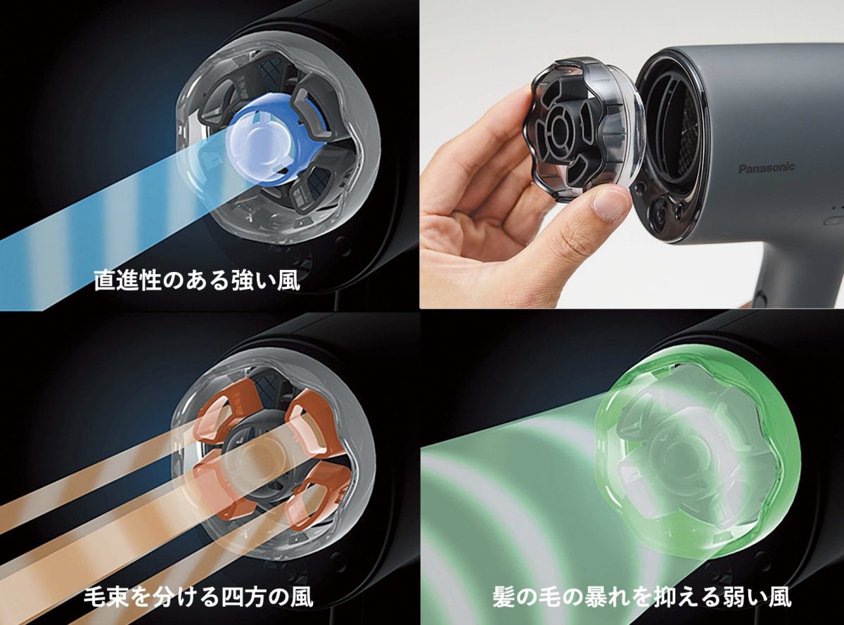3種類の風を一度に作り出す新発想の「ナイトキャップノズル」で髪の毛をより均一に乾燥(※5)