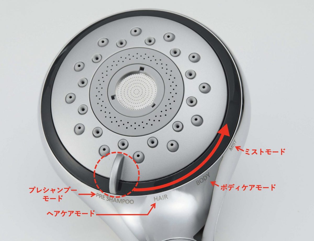 レバーで簡単にモードを切替可能。ヘッド部を取り外し、グリップ部を浴槽に入れるとシルキーバスが作れる。