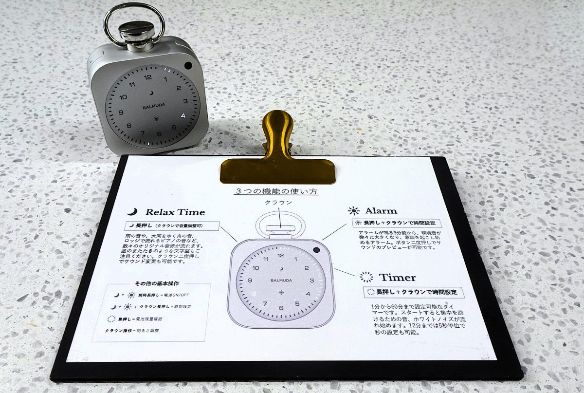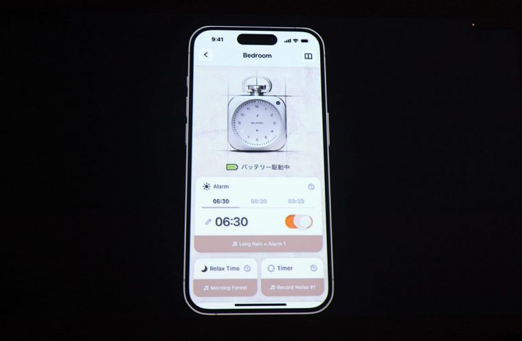 アラームの詳細設定やサウンドの選択、文字盤の光り方といったカスタマイズは専用スマホアプリ「BALMUDA Connect」と連携することで変更が可能です。高度な機能はアプリ側に集約し、本体はあくまでシンプルで直感的な“時計”として成立させるという、バルミューダらしい設計思想が貫かれています。