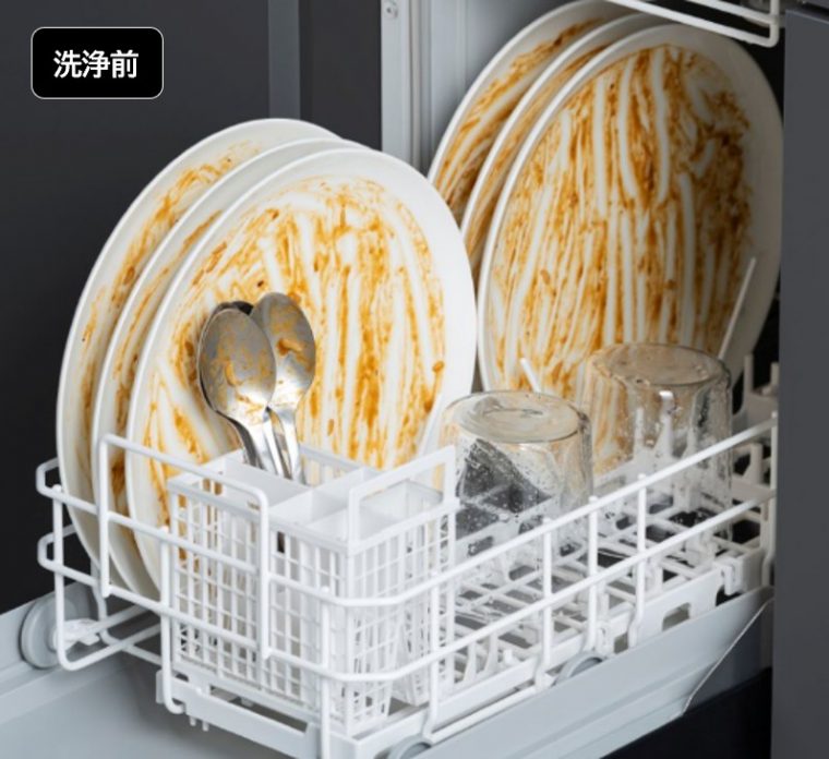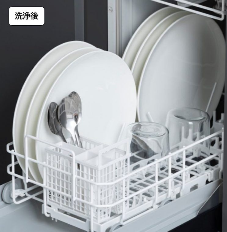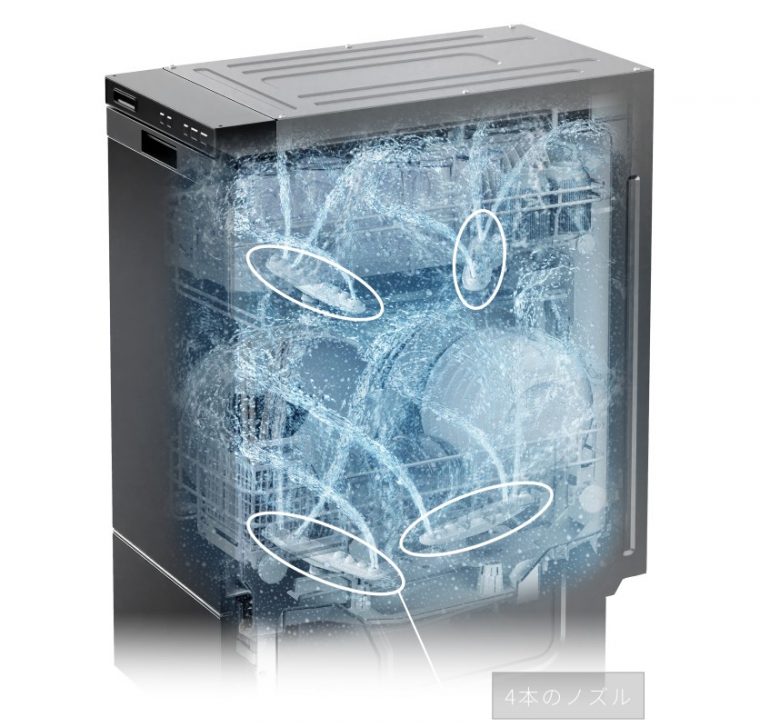 クアッドノズル(4本のノズル)による「2×2(ツーバイツー)パワフルジェット除菌洗浄」を搭載し、汚れに対して的確に水流を当てることで、手洗いの約1/9の使用水量でありながら、こびりつきや油汚れを効果的に洗浄します。さらに、約65℃の温水で洗浄することで手洗いでは難しい食器に付着した菌を99.9%除菌します。