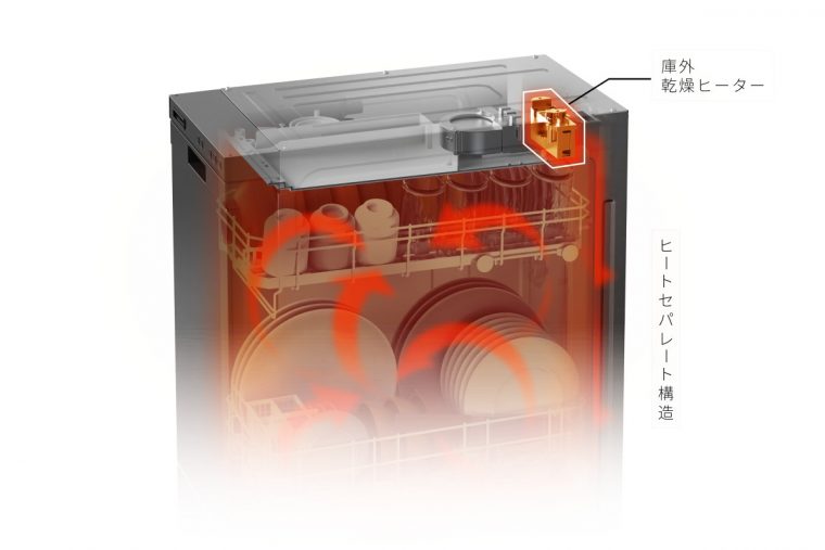 「ヒートセパレート構造」により、乾燥時などの熱による食器類の変色や変形リスク、残菜臭の発生を軽減します。