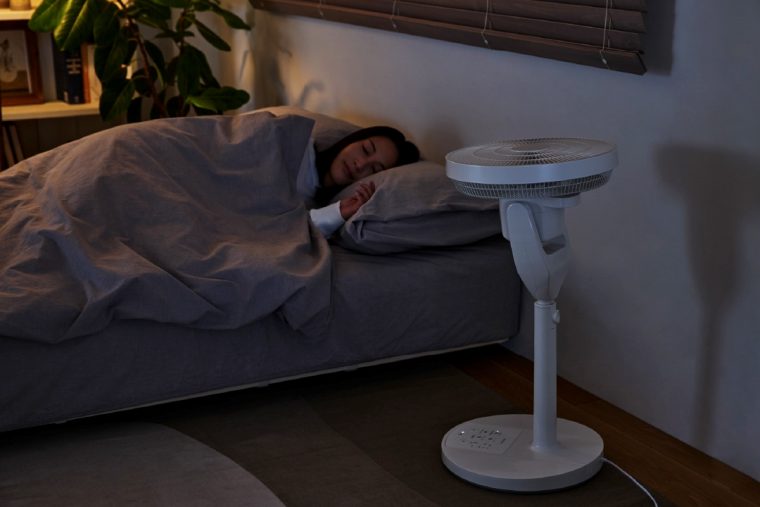 新設計の前ガードと9枚羽根で風量をアップした扇風機。上位モデルに搭載された「おやすみ空間モード」は、風量を徐々に弱めつつ風向きを上方向にすることで、直接風が当たるのを避けることができます。睡眠時に扇風機を利用する方にオススメです。