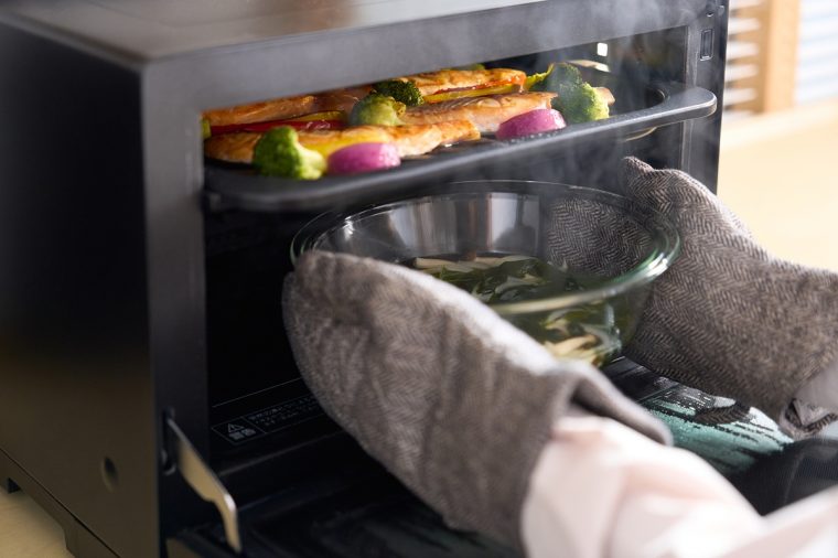 マイクロ波で発熱する独自のヒートグリル皿と、上段・下がそれぞれ最適な仕上がりになるよう設計した加熱プログラムを組み合わせることで、火加減や仕上がりを気にすることなく、2品を同時に完成させることができます。こうした同時調理により、調理中もコンロの前に立ち続ける必要がなく、加熱はレンジにおまかせできるため、日々の調理負担の軽減につながります。