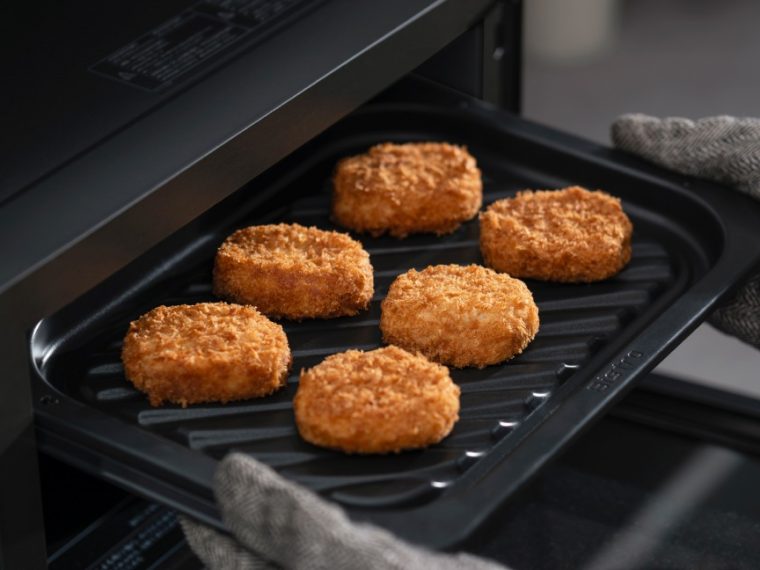 また、「フライあたため」機能が進化し、市販の調理済み冷凍フライにも対応。マイクロ波で食材内部と底面を加熱した後にヒーターで表面の水分を飛ばすことで、中はあたたかく、外はさっくりとした仕上がりを実現します。