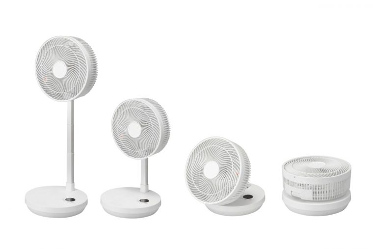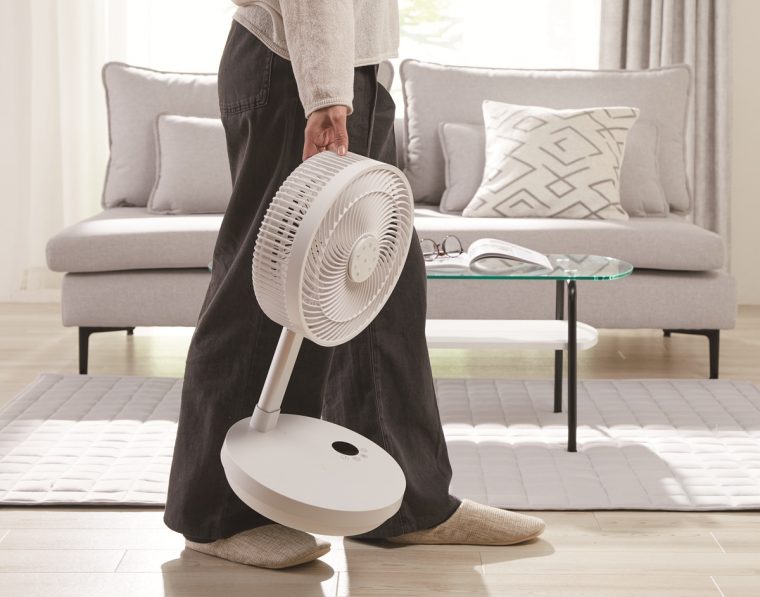 さらに左右首振り運転が可能なことに加え、折りたたんだ形でも使えるので、洗濯物の下から風を送り込むサーキュレーターとして、一年中活躍します。本体は最大80cmまで高さを調整可能。折りたためば高さ約17cmと非常にコンパクトになります。