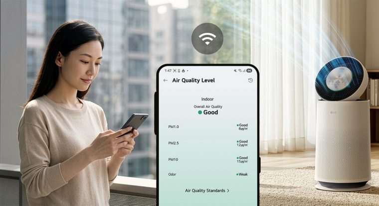 また、「LG ThinQ」アプリに対応しており、いつでもどこでもスマートフォンから遠隔操作が可能です。電源を入れたまま外出してしまった時に外出先からOFFにしたり、外出先からリアルタイムでお部屋の空気の状態を確認したり、寝る前にベッドの上からタイマーを設定したりと、便利な機能を多数備えています。
