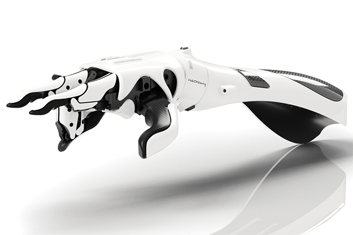 2014年に設立されたベンチャー企業、イクシーが開発する筋電義手。初代モデル「handiii」は、安価で製造でき、デザイン性が高いことで世界的な評価を受けました。今年4月に、handiiiの実用性を高めた「HACKberry」を発表。