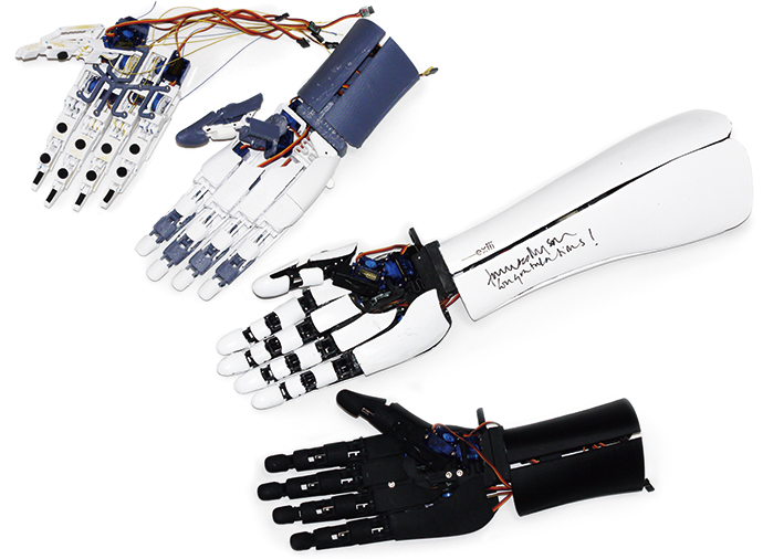 handiiiのプロトタイプ。実際に義手を必要とする人たちをパートナーに、研究・改良を進めています。