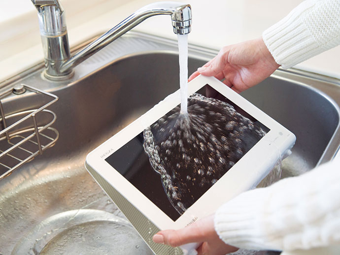こだわり1 防水仕様だからキッチンやお風呂で気兼ねなく使える!