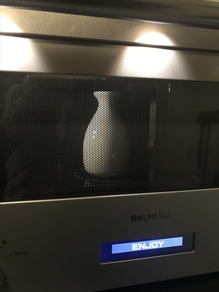 そして、冬の楽しみといえば、日本酒の熱燗ですね。その点、本機はドリンク用のモードとして「コーヒー」と「ミルク」のほかに、「アツカン」を用意しています。さすがオトナのレンジ、わかっている! なお、この「アツカン」は「1杯」(1合目安)のみ選択可能。徳利に日本酒1合を入れ、「アツカン」モードで温めたところ…徳利がちょっと大きかったからでしょう、ややぬるめの仕上がりに。もう一回「アツカン」で温めると、ちょうどいい熱さになり、まろやかでおいしく仕上がりました。
