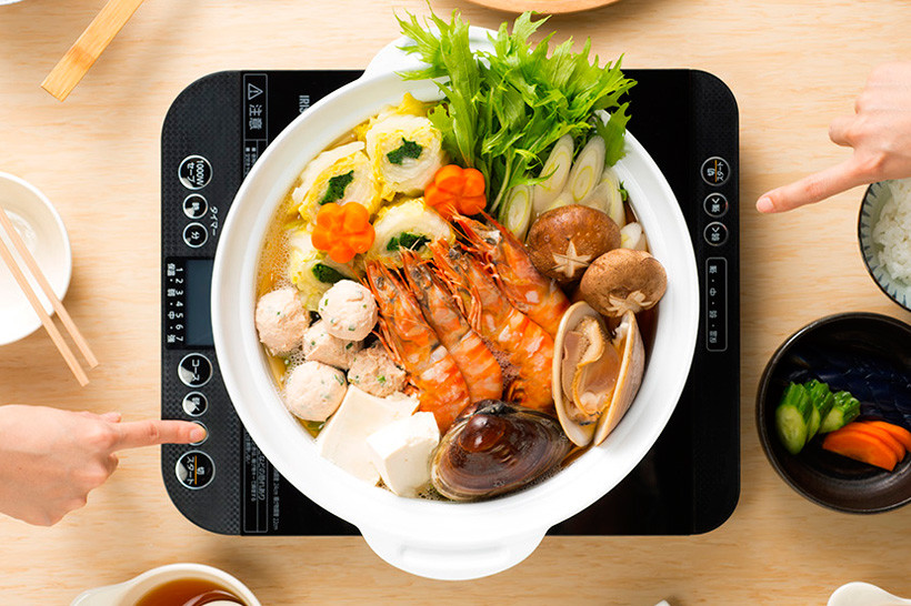 正面と向かい側のどちらにも操作スイッチがついた卓上IHコンロ。操作パネル側に回り込むことなく、火力調節や電源のオン・オフができるので、鍋が吹きこぼれそうになったときにも慌てずに操作ができます。1000Wセーブ機能モードにすると、最大消費電力を調節でき、ブレーカーが落ちる心配もありません。2か所に操作スイッチがあることに感心した宮迫さん、「なるほどね~。(そういう場面)あんねん。それこそ沸騰しているときにオザ(小沢さんのこと)側にボタンがあったら、いや、オザゆるめて、煮詰まってるから(と、いちいち言わなきゃいけない)」と、困った実例を挙げてくれました。