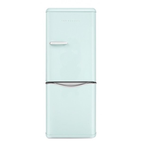 お洒落なチェック柄の天板、シルバーの横ハンドルなどがかわいい、レトロスタイルの冷蔵庫。カラーはクリームホワイト、アクアミント、レッド、ブラック、スペースシルバーの5色。350mℓ缶がすっぽり入る深めのフレッシュケースは、乳製品やハム等の保存に最適です。ワイドな引き出し型の52L大容量冷凍室は、面倒な霜取りが不要なファン冷却式。ガラストレイを採用し、掃除がしやすいのも魅力です。