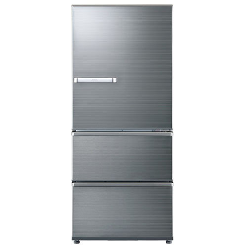 ソリッド&フラットなデザインで、2017年度グッドデザイン賞を受賞した「SVシリーズ」の3ドア冷蔵庫。アクセントとなる光沢を帯びたグリップハンドルは、心地よい握りやすさとデザイン性を併せ持っています。「旬鮮チルド」は、ドアの開閉時に入る外気の水分をフィルターに吸収し、運転中に庫内に放出するシステムで、スピード冷却と湿度コントロールのダブル効果を実現し、食品の鮮度が損なわれにくくなっています。